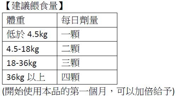 獨家使用低溫冷壓技術萃取卵磷脂添加葡萄糖胺、軟骨素,並入有機硫化物─ MSM,可以保護關節維持活力讓犬貓擁有良好的生活品質。 ■MSM新成分添加 關節保健 ■低溫冷壓軟顆粒 方便餵食 ■有效成分濃度高 精純達標 ■含四種機能成份 多管齊下 【主要成分】卵磷脂, 米麩燕麥粉鹽酸葡萄糖胺MSMMSM 有機硫化物,軟骨素(自鯊魚提煉), 有機硫化物,軟骨素(自鯊魚提煉), 有機硫化物,軟骨素(自鯊魚提煉), 亞麻仁,精米粉鱈魚肝油糖蜜維生素 E,小麥胚芽, 甘油,碳酸鈣味劑。 【保證成分析】 粗蛋白 ……………… 11% 以上 粗脂肪 ……………… 25% 以上 粗纖維 ……………… 3% 以下 水分 …………………… 7% 以下 鈣……………………… 0.9% 0.9%以上 磷……………………… 0.8% 0.8%以上 每三顆軟粒所含活性成分量: 鹽酸葡萄糖胺( Glucosamine HCL): 500mg 軟骨素( Chondro): 210mg 有機硫化物( MSM ): 500mg 卵磷脂: 380mg 【使用方式】可當點心、獎賞或混在食物中給予。