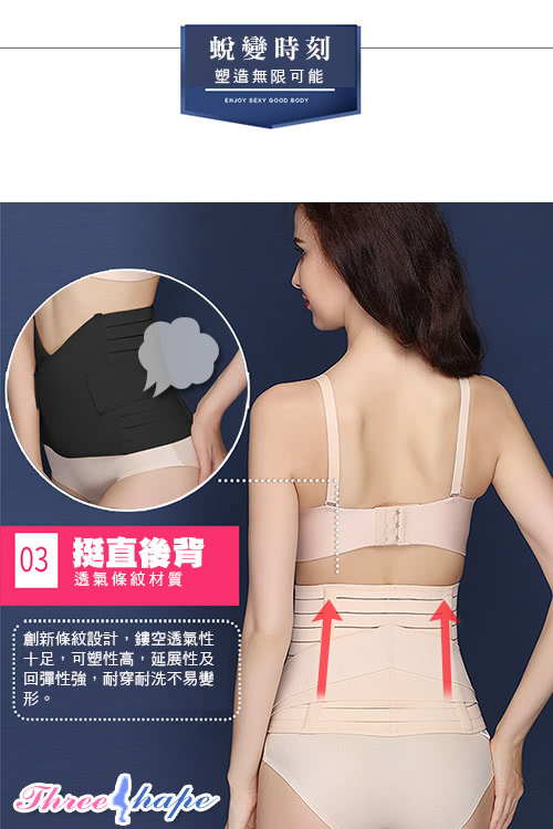 舒適透氣超值2件組 塑身超彈力透氣條紋面料魔鬼氈設計,隨時調整緊度適合初階塑身者、產後婦女 |